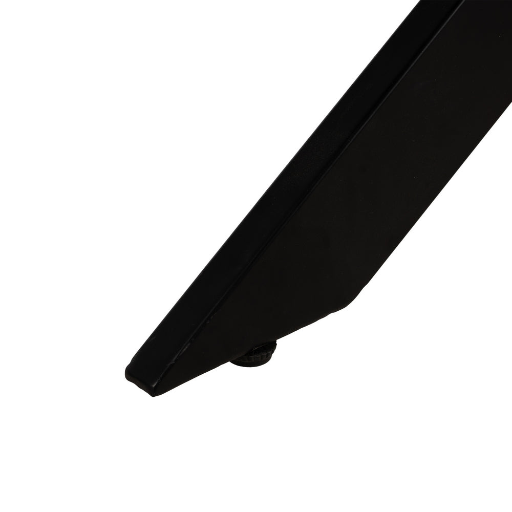 Crafted from MDF with a sleek natural wood finish and supported by a bold black iron base, this dining table combines strength and modern elegance. Its refined oval top and sculptural legs create a striking center piece, perfect for contemporary dining spaces.